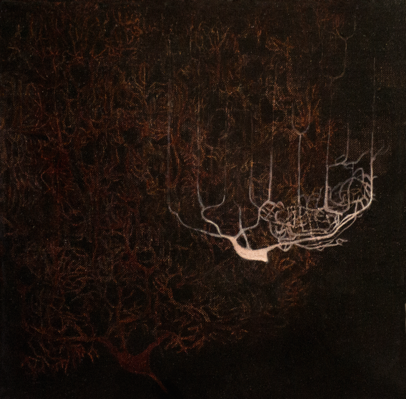 Artwork details: Vestige, Acrylic paint and ink on Caravaggio linen, 20 x 20 cm, 2014