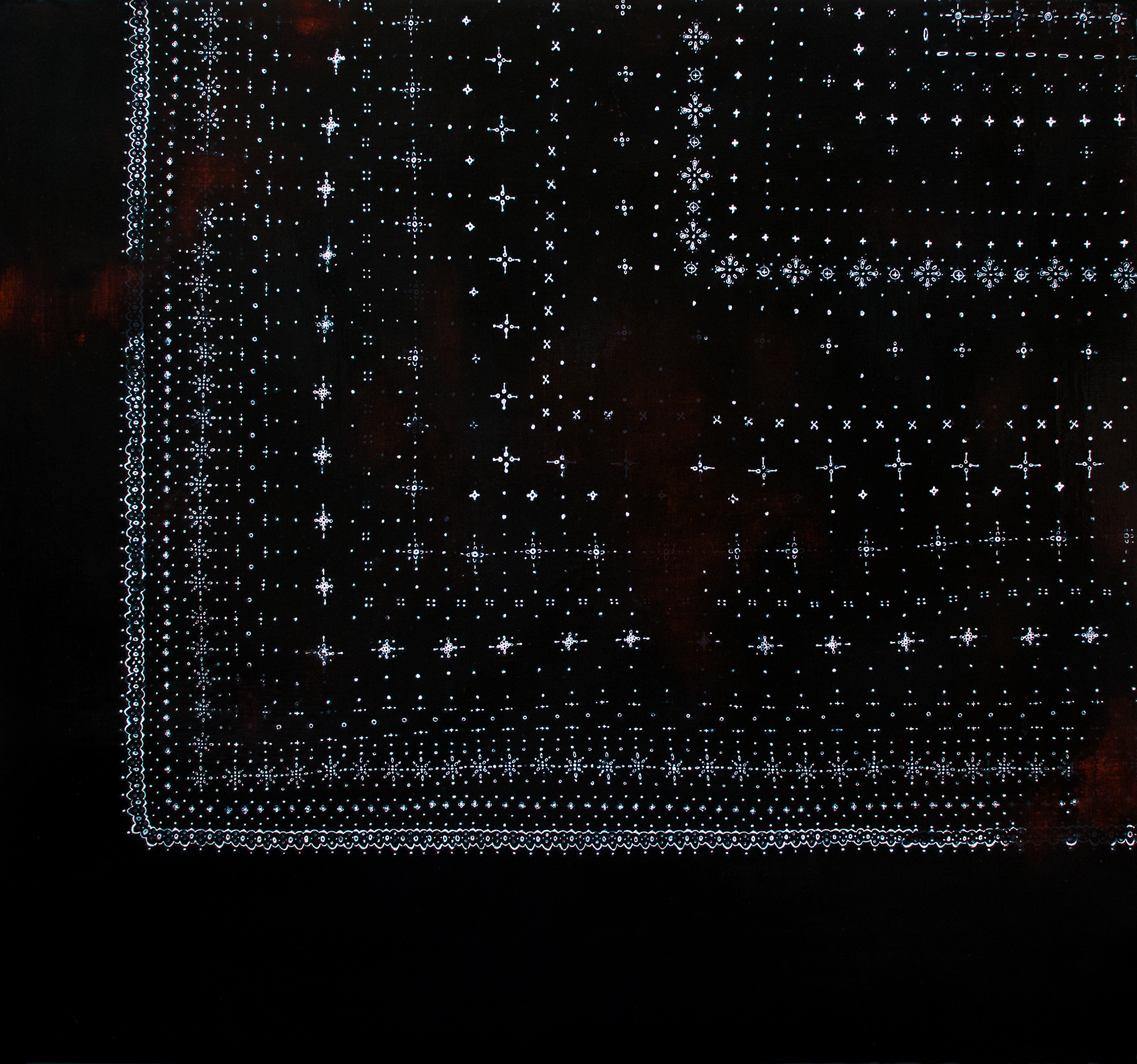 Artwork details: Mel Dare, Traces of conditioning (b), acrylic paint and ink on wooden panel, 65 x 70 cm, 2014