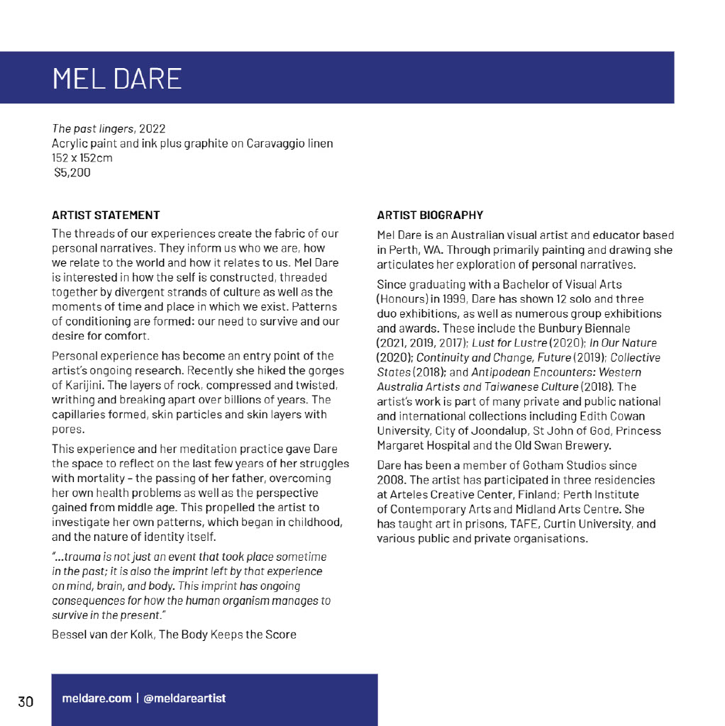 Mel Dare’s Pages for Joondalup Invitation Art Prize 2022 Catalogue
