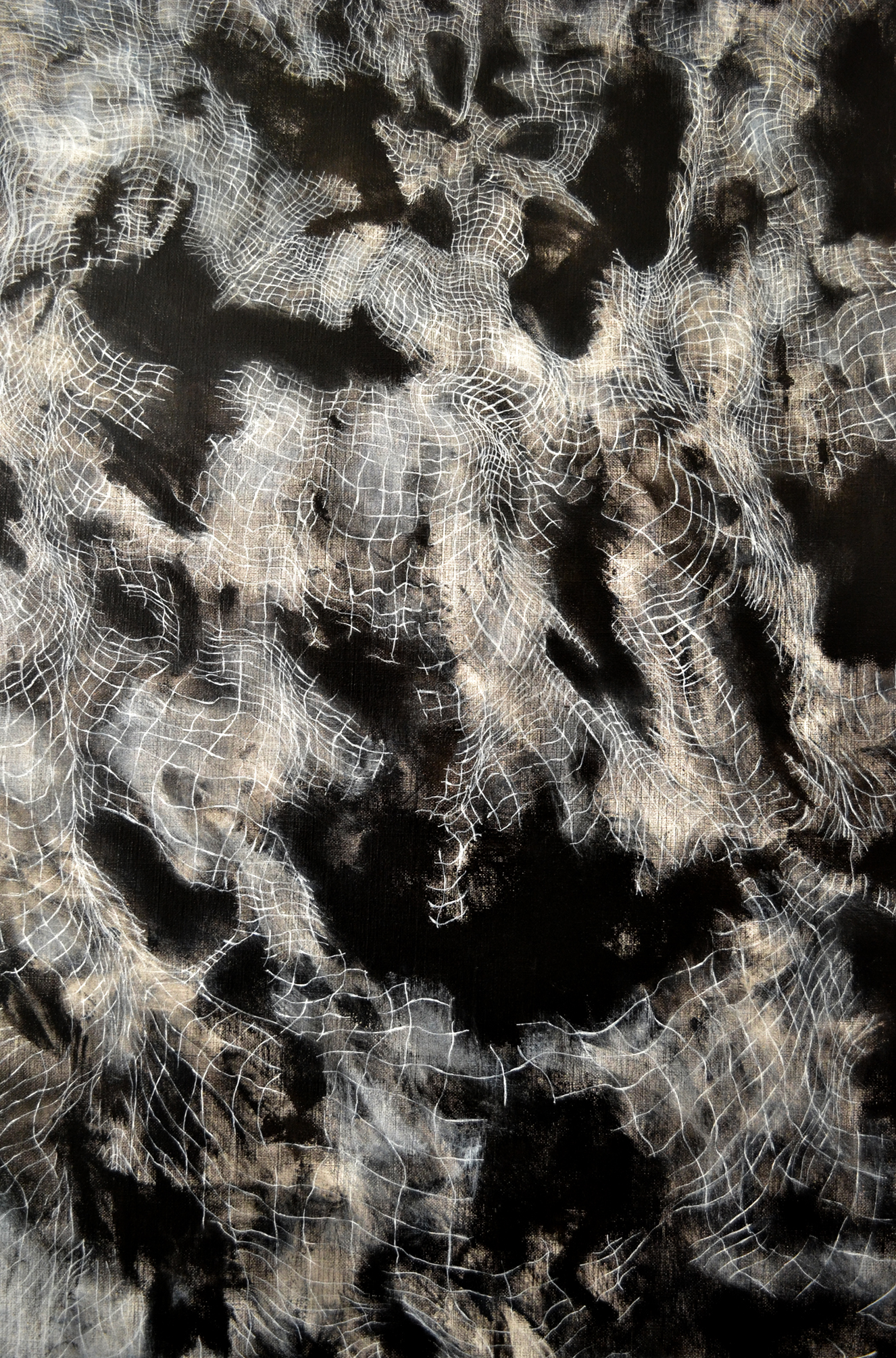 The starting point for this work began in 2013 in the Czech Republic when the artist revisited her mother’s homeland and developed a further interest in how an individual is constructed. Gentle strands and crude stitches forming the pattern of conditioning imposed by external and internal influences. Weaving filters to see through, blankets to comfort ourselves, nets to save us and maps by which to navigate our lives. Formed by our simple yet almost all-consuming need to survive and our equally strong desire for comfort.
