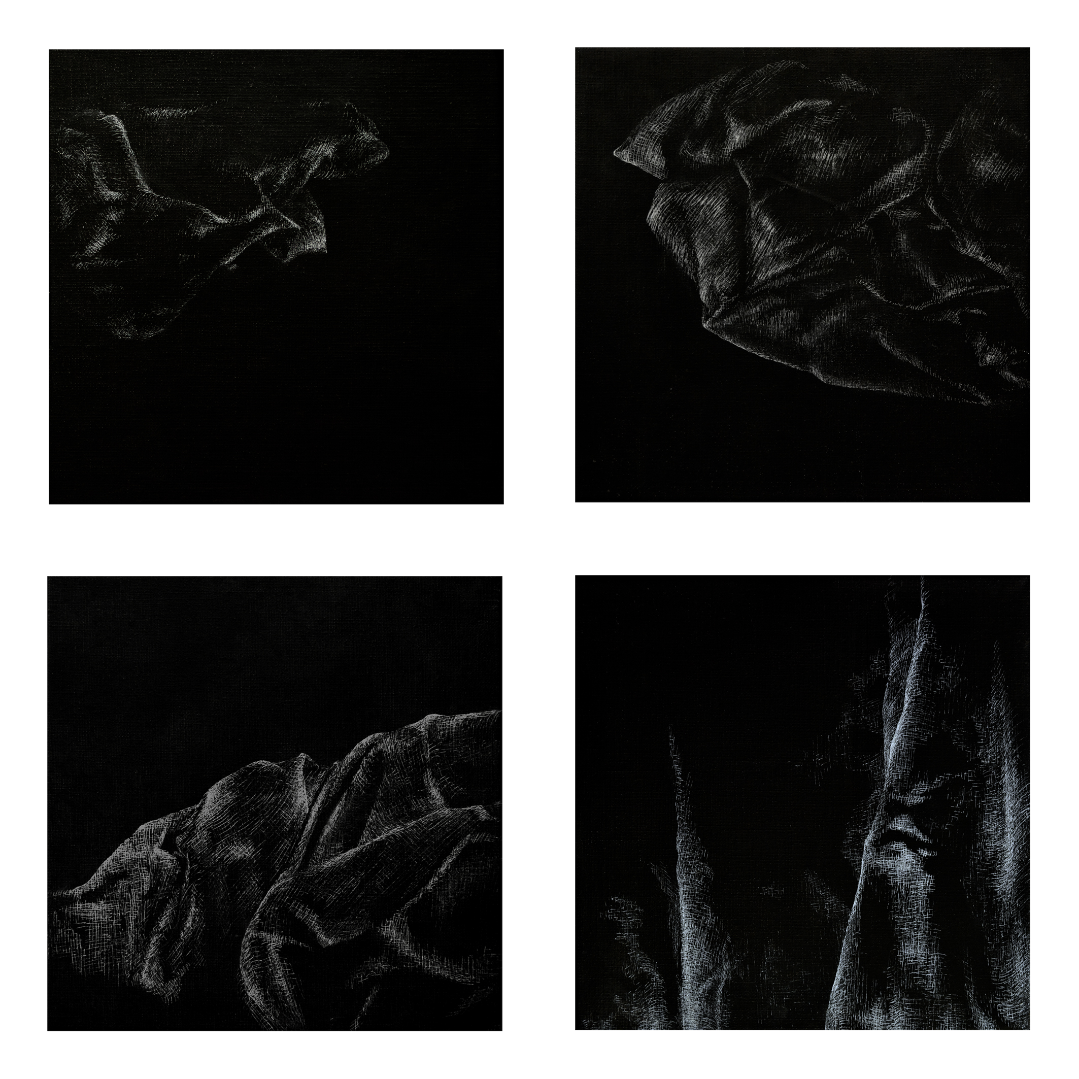 These artworks are part of a body of work which began in the Czech Republic while Mel Dare was revisiting her mother’s homeland. Immersed in such a long history full of beauty and dark passages she developed a further interest in the notion of self. How an individual is constructed, threaded together by divergent strands of culture as well as the moments of time and place in which we exist. The echo of events and memory that reverberate throughout our lifetimes. Gentle strands or crude stitches, the pattern of conditioning imposed by external and internal influences. By our simple yet almost all-consuming need to survive – biologically, socially and psychologically. As well as our equally strong desire for comfort.